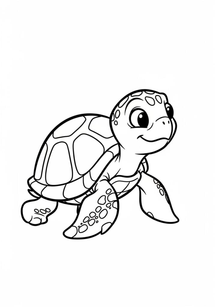 This page is genuinely one of the most enjoyable in the collection for me because that shell is just a coloring dream. You have all these lovely separate panels just waiting to be filled in, and you can keep them all the same tone or try making each one slightly different for a more detailed mosaic effect. I always end up spending way more time on this page than I plan to because there is something so meditative about working through each shell section one by one. The spotted flippers are a fun finishing touch too, and the whole finished page just looks absolutely stunning.