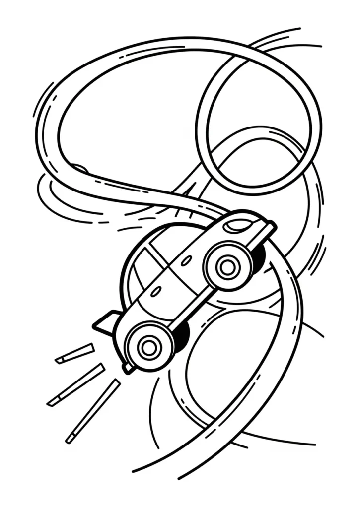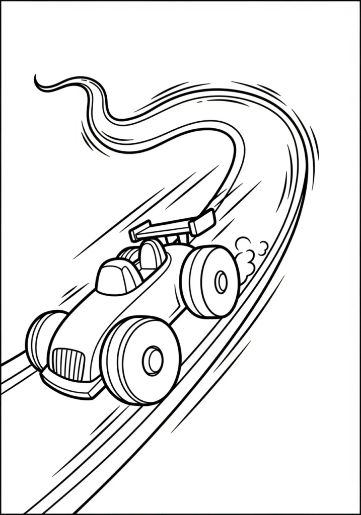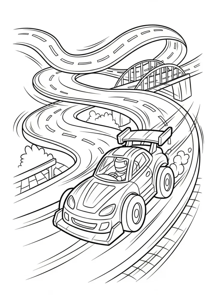 I find this kind of page so satisfying because the flowing roads guide my coloring naturally. It feels almost meditative to follow the curves while still enjoying that fast paced racing vibe.