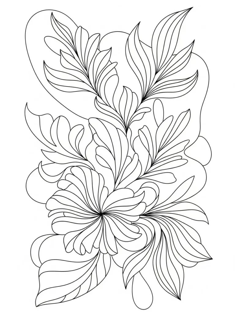 I think this page would be so fun for just letting loose with color theory and gradient blending. Since the elements are abstract and flowing, there are no strict rules about what color things should be, which is super liberating for my creative mood. I could spend ages blending beautiful blues and greens through those long, sweeping lines to make the whole design look like it’s underwater or moving in a gentle breeze. It’s a fantastic option when I want a picture that’s intricate enough to be engaging but doesn’t require following a specific narrative, just pure color satisfaction.