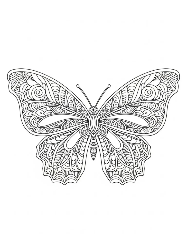 If you love the meditative quality of zentangle patterns, this butterfly is going to be your new favorite page. I always find coloring these incredibly busy designs so grounding because I have to focus entirely on one tiny section at a time. I plan to use every color in my rainbow pencil set, treating each section of the wing design like a tiny, separate jewel. Trying to maintain symmetry while using different color combinations across the four wings is the perfect engaging challenge for a long, relaxing afternoon.