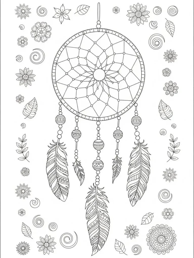 I am completely obsessed with how much detail is packed into those feathers alone. This page is so relaxing because I can focus on one area at a time, like meticulously coloring the beads in vibrant jewel tones before moving to the feathers. I’m thinking about using warm browns and oranges for the feathers to give them a natural look, contrasted with bright pinks and golds in the surrounding flowers. It’s a wonderful way to tap into that free-spirited, earthy creative energy when I need a little grounding boost.
