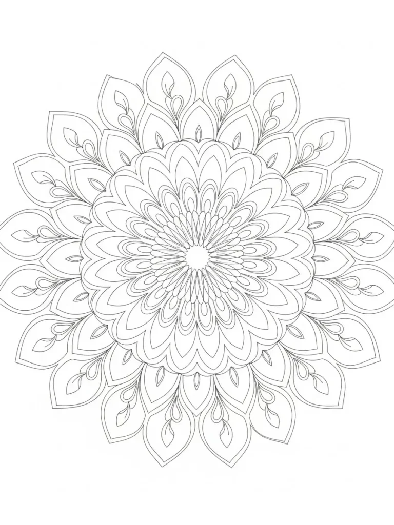 Coloring this mandala is going to be such a peaceful journey for me, like watching a flower slowly bloom right on the page. I think the best way to tackle this is to pick a color palette that moves seamlessly from light to dark, perhaps starting with a pale yellow or white in the center and gradually deepening the color for each successive ring. All those repeating, slightly different petal shapes make it easy to slip into a coloring flow state without having to make big design decisions. It is wonderfully detailed and promises a truly calming, focused creative session.