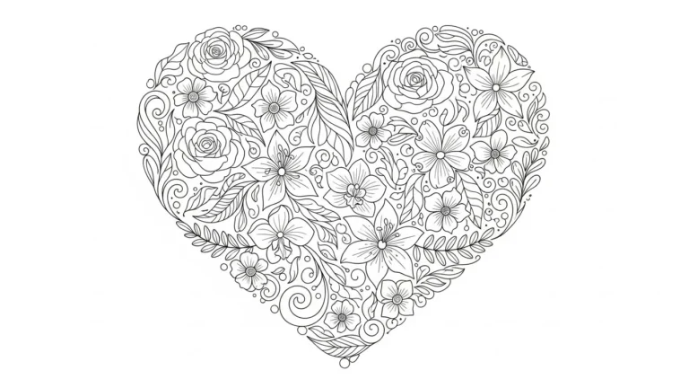 If you are into slow coloring sessions that help you fully unwind, this page is such a lovely choice. I enjoy taking my time with the tiny curls and leaf shapes, adding soft shading and gentle color transitions. It feels calming in that focused way where the rest of the world fades out for a bit. This design always makes me feel relaxed and accomplished once I see the heart come to life with color.