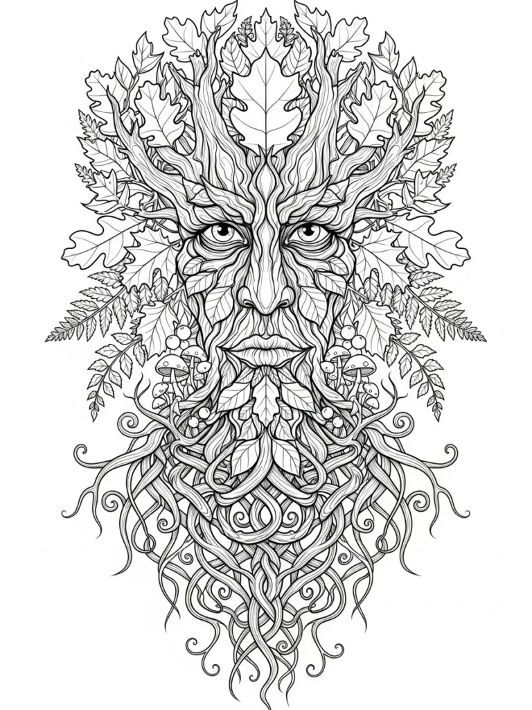 I love coloring pages like this because they feel immersive and a little mysterious. Focusing on all the tiny lines and natural textures pulls me into a calm flow where time just slips away. I enjoy mixing earthy tones with subtle highlights to bring the face to life bit by bit. It feels creative and grounding at the same time, and I always finish feeling relaxed and quietly proud of how detailed it turns out.