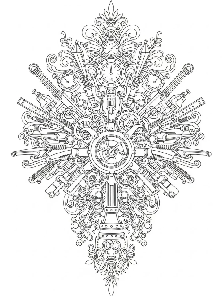 I love how this page feels like a puzzle made of patterns. Coloring each gear and little mechanical piece keeps my focus locked in, and I enjoy switching between metallic tones and softer colors to make everything pop. It feels challenging in a fun way and gives my brain something to concentrate on without feeling rushed. By the time I finish, I always feel relaxed and oddly proud of how detailed the final result looks.