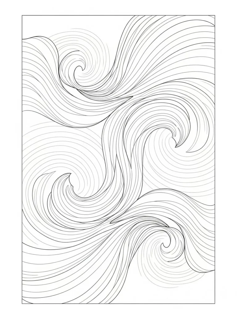 I love this page when I want something truly effortless and calming. Coloring each line slowly feels almost meditative, and I can easily get lost in the gentle repetition. Some people love bold color changes here, but I usually stick with soft gradients or a single shade and let the movement do the work. This one always helps my mind quiet down and makes coloring feel like a deep exhale.