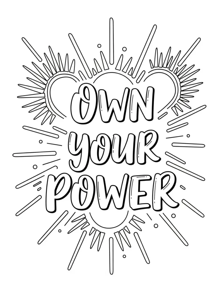 I love coloring this page when I need a quick reminder of my own strength. Filling in the rays feels energizing, and I like using bright colors that make the message feel even more powerful. If you’re into designs that feel bold without being overwhelming, this one is such a confidence boost. I always finish it feeling more motivated and sure of myself, like the page quietly cheered me on the whole time.