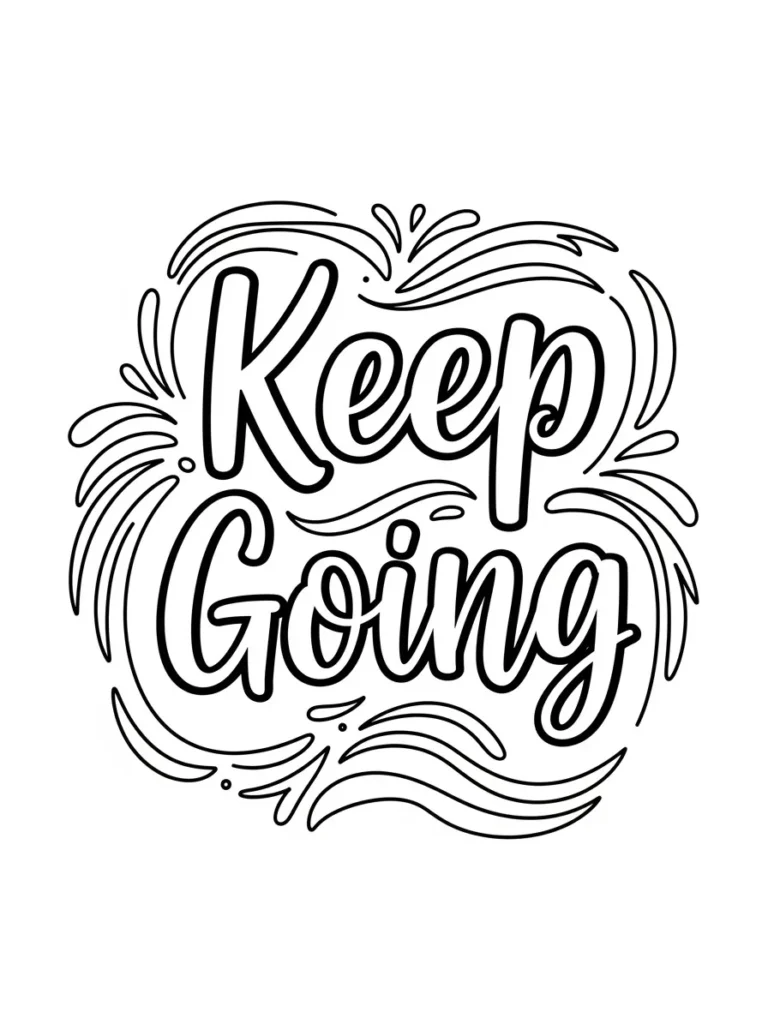 I really like coloring this page when I need a quick boost of motivation. The bold letters are satisfying to fill in, and the sweeping lines around them make it fun to experiment with color flow and contrast. If you’re into simple designs that still feel powerful, this one is a great choice. I always finish it feeling a little more energized and ready to keep moving forward, which is exactly what a good quote page should do.