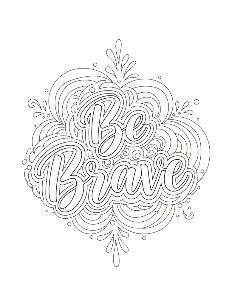 I really enjoy coloring this page when I need a little courage boost. The layered swirls are fun to color and give me space to experiment with color blending or bold contrasts. If you’re into designs that feel uplifting and a bit playful, this one is such a good pick. I always finish it feeling more confident and energized, like the message quietly worked its magic while I colored.