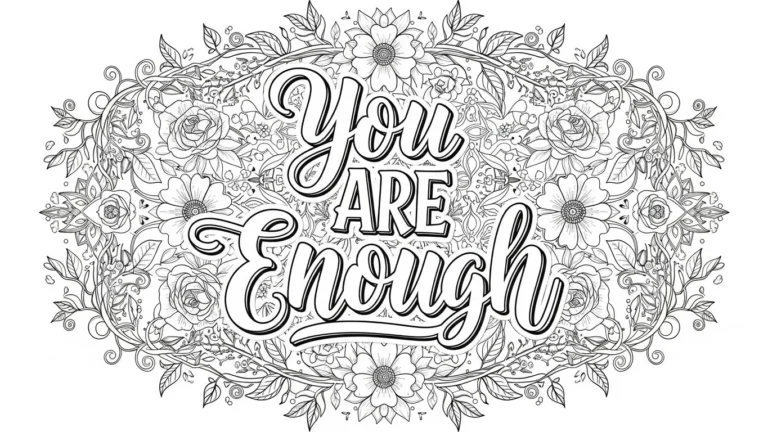 I really love coloring pages like this because it feels calm but still meaningful. Filling in the flowers and leaves is soothing, and the quote itself feels like a quiet reminder to slow down and be kind to yourself. If you enjoy blending soft colors or playing with gentle gradients, this page is perfect for that relaxed creative mood. It’s the kind of design I would color when I want something peaceful, thoughtful, and quietly empowering without feeling overwhelming.