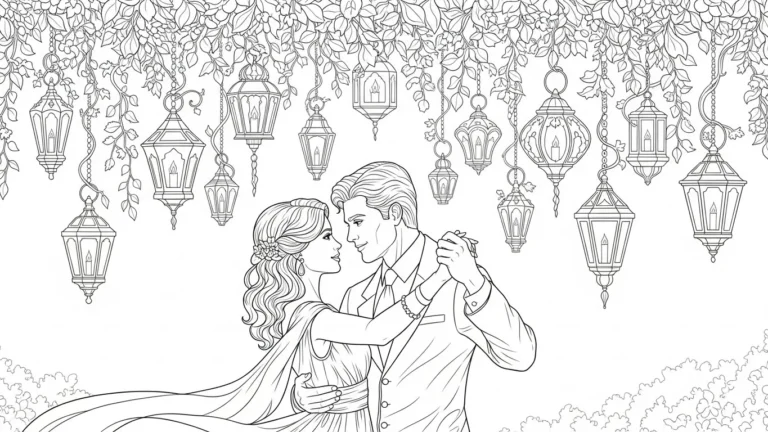If you’re into coloring pages that feel dramatic yet soothing, this one is such a pleasure. I love filling in the florals with soft romantic colors while leaving the silhouettes dark and powerful. The mix of tiny details and open space keeps me relaxed without feeling overwhelmed. This page feels magical and emotional, and every time I color it I get that slow calm feeling that makes the whole experience extra special.