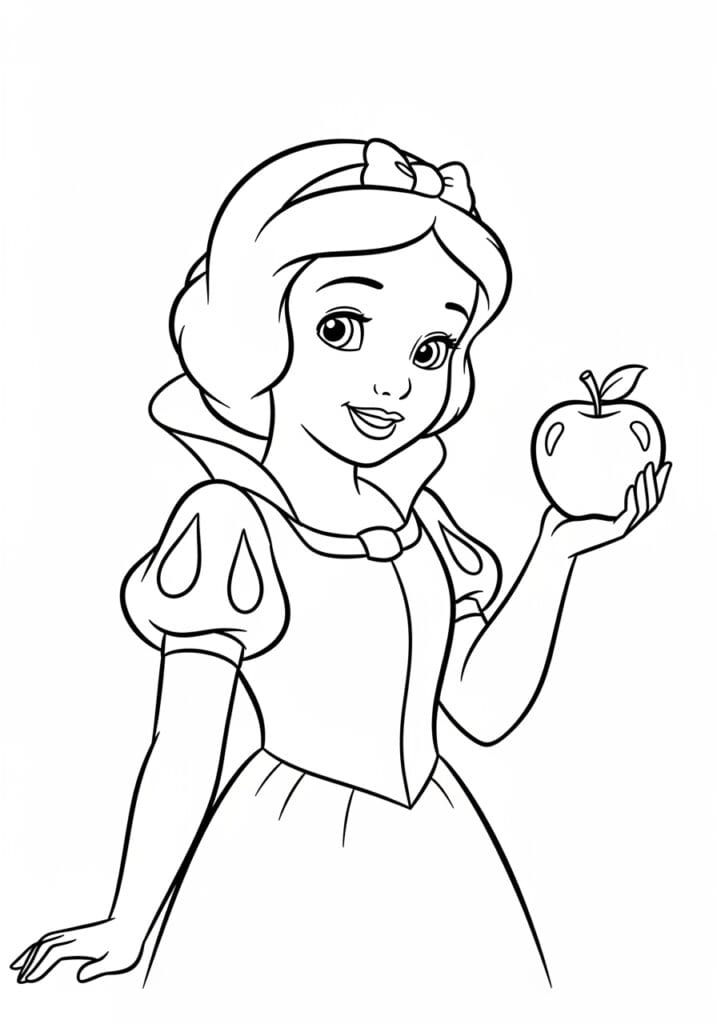Snow White Holding The Poisoned Apple Coloring Page