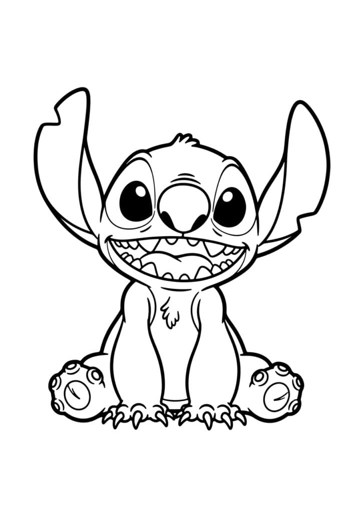 • Stitch Sitting Down With His Big Grin Coloring Page