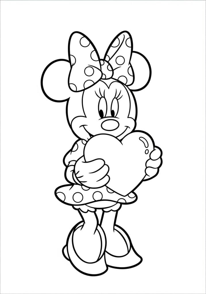 • Minnie Mouse Holding A Big Heart Coloring Page