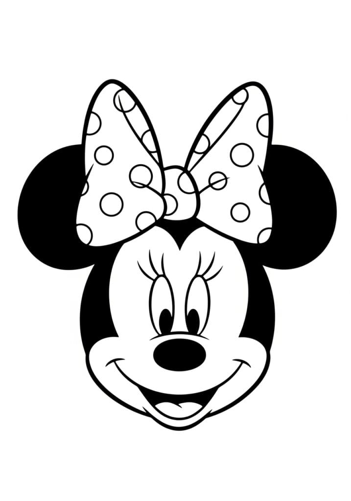 • Minnie Mouse Face With Polka Dot Bow Coloring Page