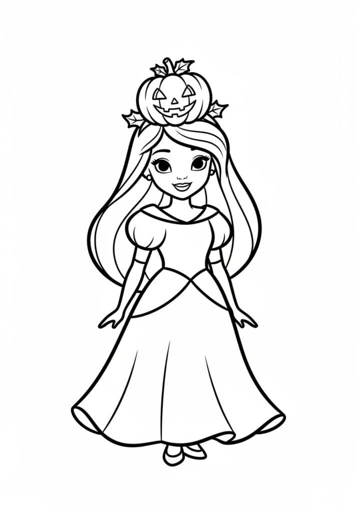 Disney Princess With a Jack-O-Lantern Hair Crown Coloring Page