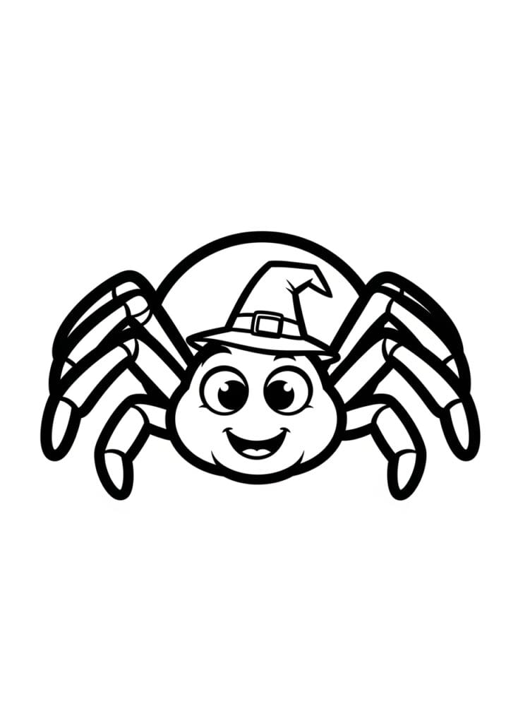 • Smiling Halloween Spider Wearing a Little Witch Hat Coloring Page