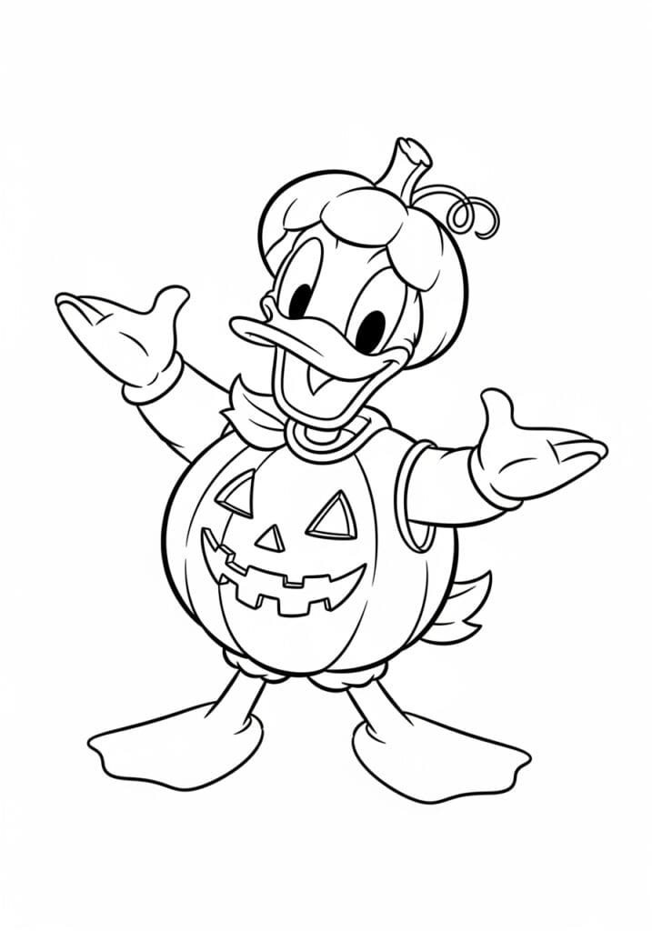 • Donald Duck In a Pumpkin Costume Halloween Coloring Page
