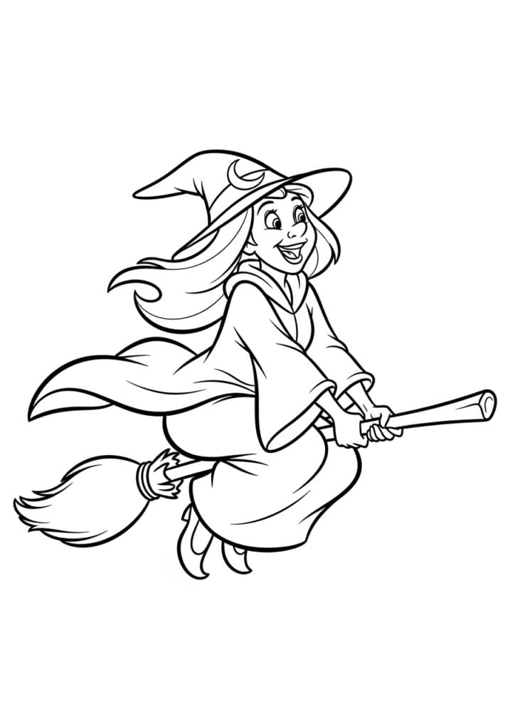 • Disney Princess Witch Flying on a Broomstick Coloring Page