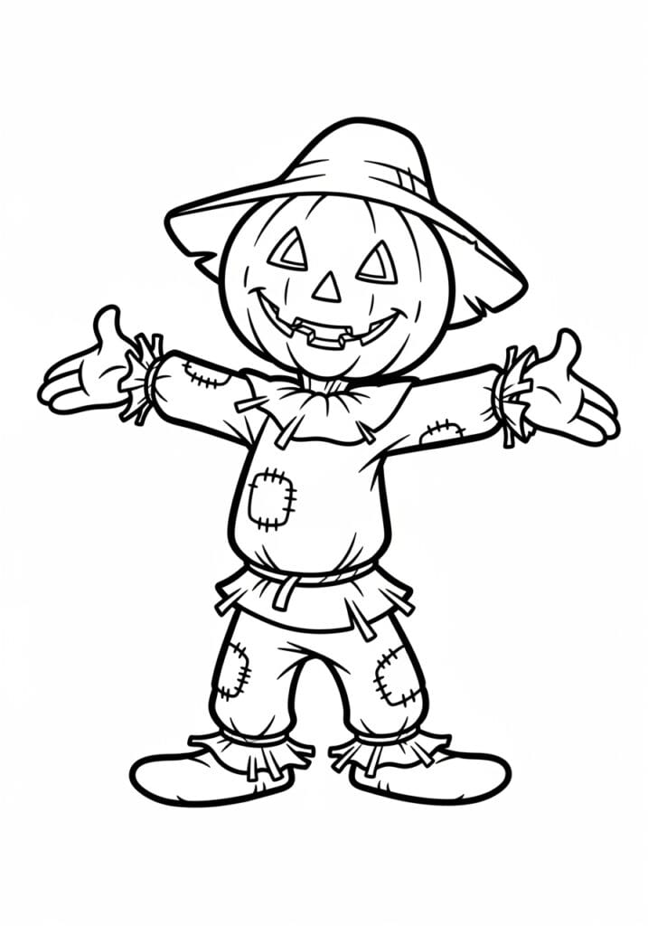 • Friendly Pumpkin Head Character in a Scarecrow Outfit Coloring Page