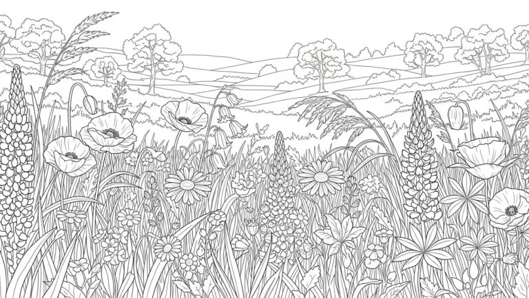 If you are into pages that feel bright and uplifting, this one is such a joy to color. I love starting with the big daisies and slowly working my way through the smaller blooms, switching between sunny yellows, soft whites, and fresh greens. The open sky gives me room to breathe creatively, which makes the whole experience feel relaxing instead of rushed. This page always puts me in a lighter mood and feels like a little spring escape on paper.