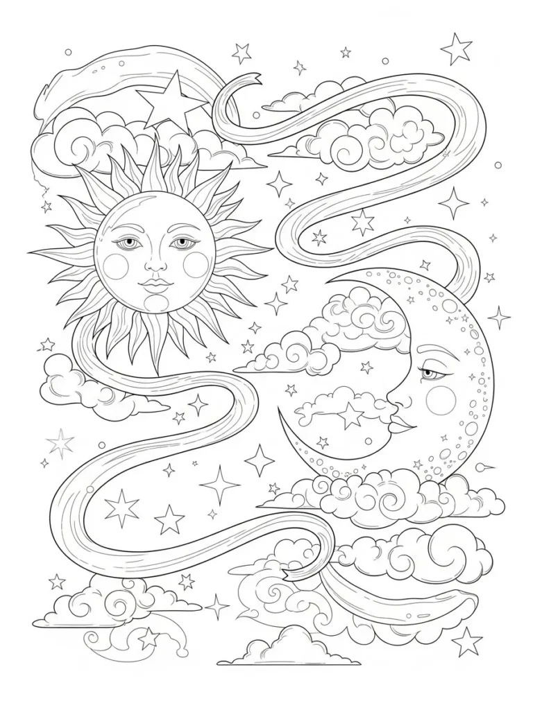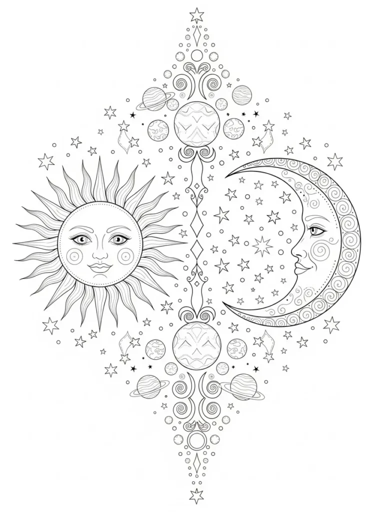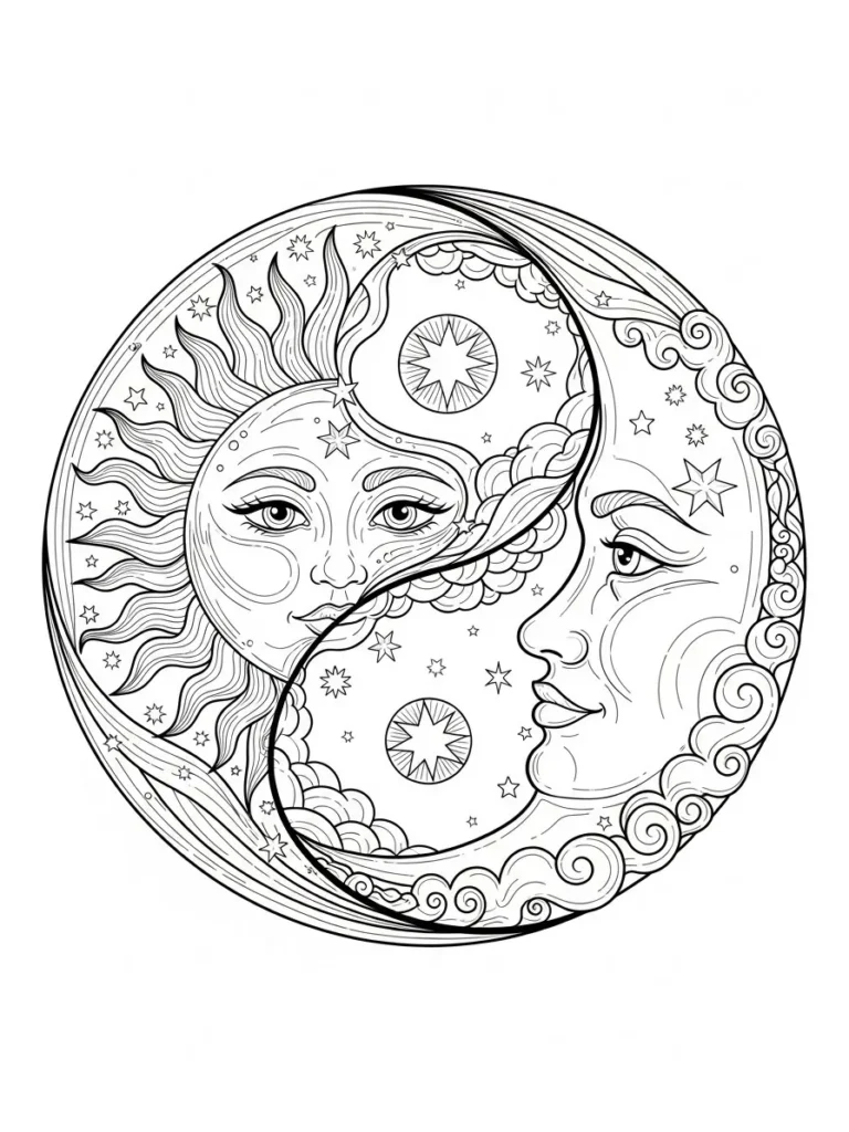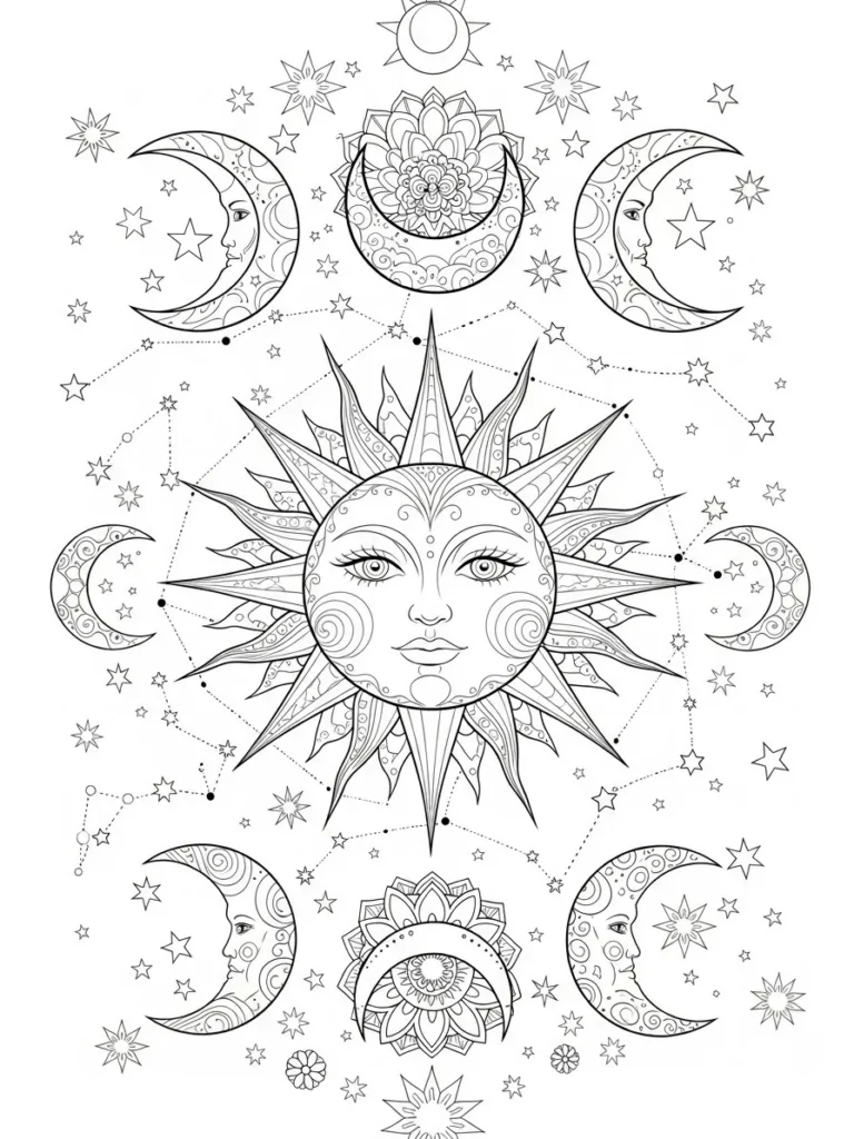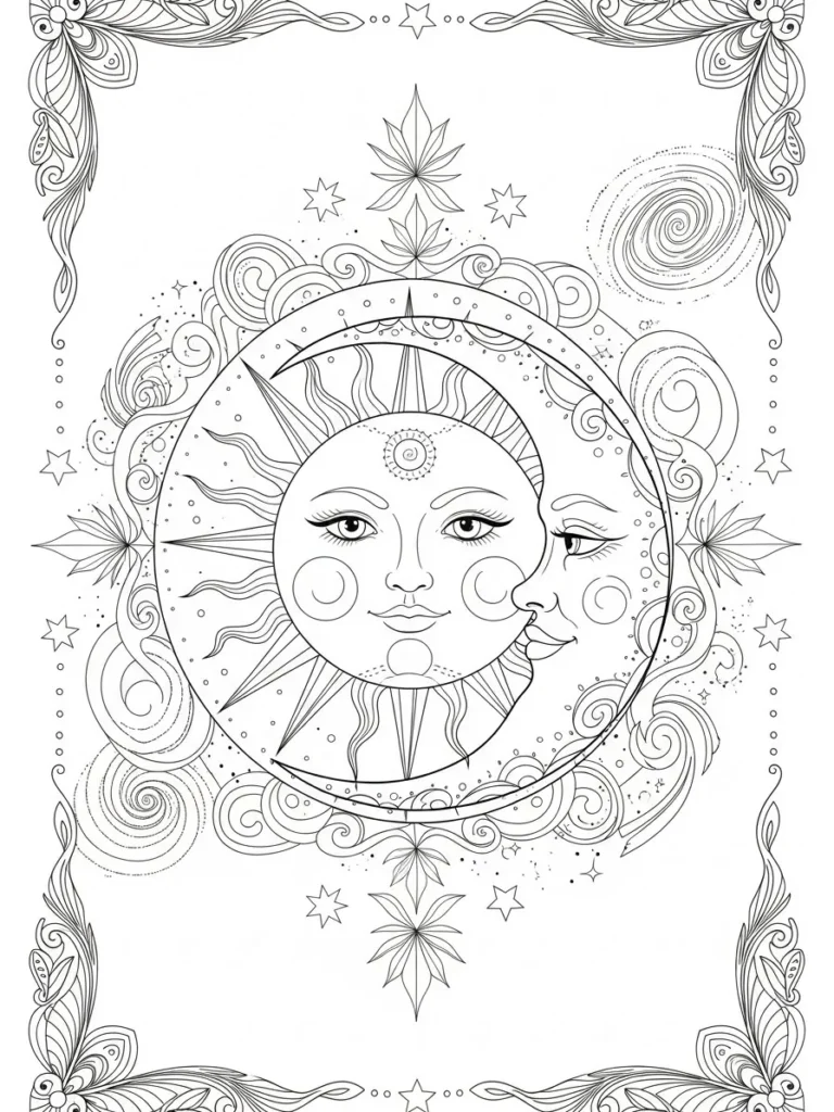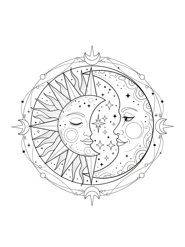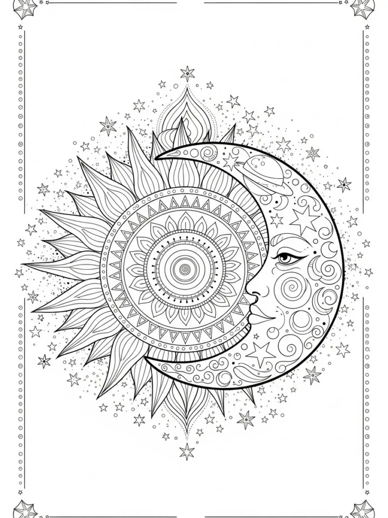 20 Sun and Moon Adult Coloring Pages Full of Celestial Harmony
