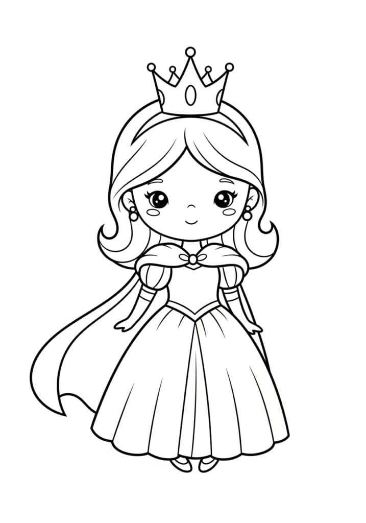 What gets me about this particular page is that flowing cape because it creates this really lovely secondary shape alongside the skirt that you can color in a completely different shade for a two-toned look. I immediately picture a deep royal blue cape paired with a soft blush pink gown, and honestly the combination in my head already looks stunning. The tall crown is also such a fun detail to make sparkle with some metallic gold or silver. For a chibi style page it has a surprisingly regal feel to it, which makes the coloring experience feel a little more grown-up and satisfying without being overly complicated.