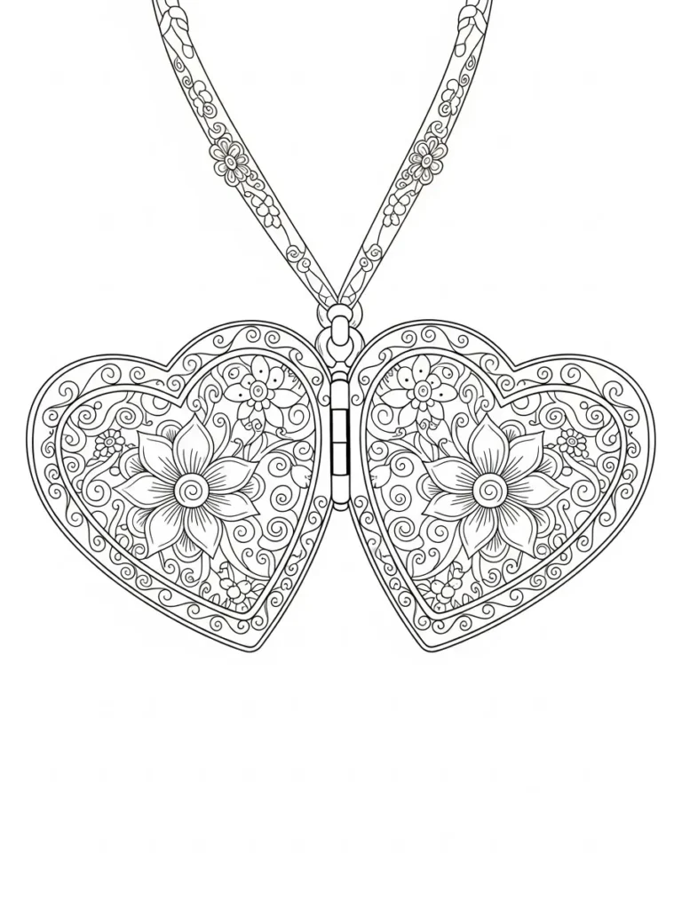 I love coloring this one because it feels symbolic and a little mysterious. Working through the tiny roses and curls is so calming and I enjoy choosing rich romantic colors that make it feel like a treasured keepsake. If you are into meaningful Valentine designs this page is such a cozy choice. It feels thoughtful relaxing and perfect for a slow coloring session with a dreamy mood.