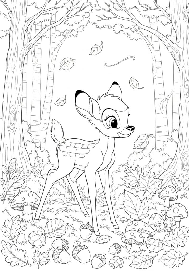 I am not even going to pretend I did not get a little emotional picking this one for the list because Bambi in an autumn forest is just pure magic. This page is the perfect mix of a clear focal point and loads of little detail areas to keep your hands and mind happily busy. I personally love starting with Bambi and working outward into the forest, saving the mushrooms and acorns for last as a little reward. The spotted mushrooms on the right side are genuinely one of my favorite things to color because the dot pattern is so satisfying and you can go as classic red and white or as wildly creative as you want. If you are someone who loves nature scenes with a nostalgic Disney twist, this one is going to be a firm favorite.